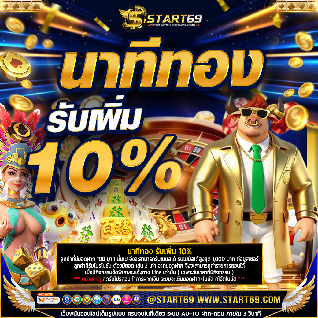 ⏰นาทีทอง ฝากรับเพิ่ม 10% ( รับได้เฉพาะวันเวลาที่มีกิจกรรม ซึ่งจะประกาศทางไลน์ )