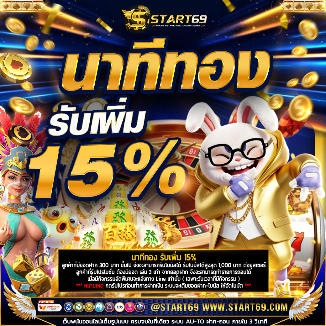 ⏰นาทีทอง ฝากรับเพิ่ม 15% ( รับได้เฉพาะวันเวลาที่มีกิจกรรม ซึ่งจะประกาศทางไลน์ )
