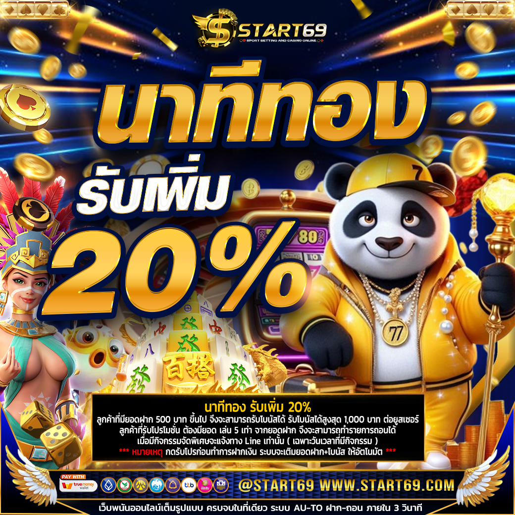 ⏰นาทีทอง ฝากรับเพิ่ม 20% ( รับได้เฉพาะวันเวลาที่มีกิจกรรม ซึ่งจะประกาศทางไลน์ )